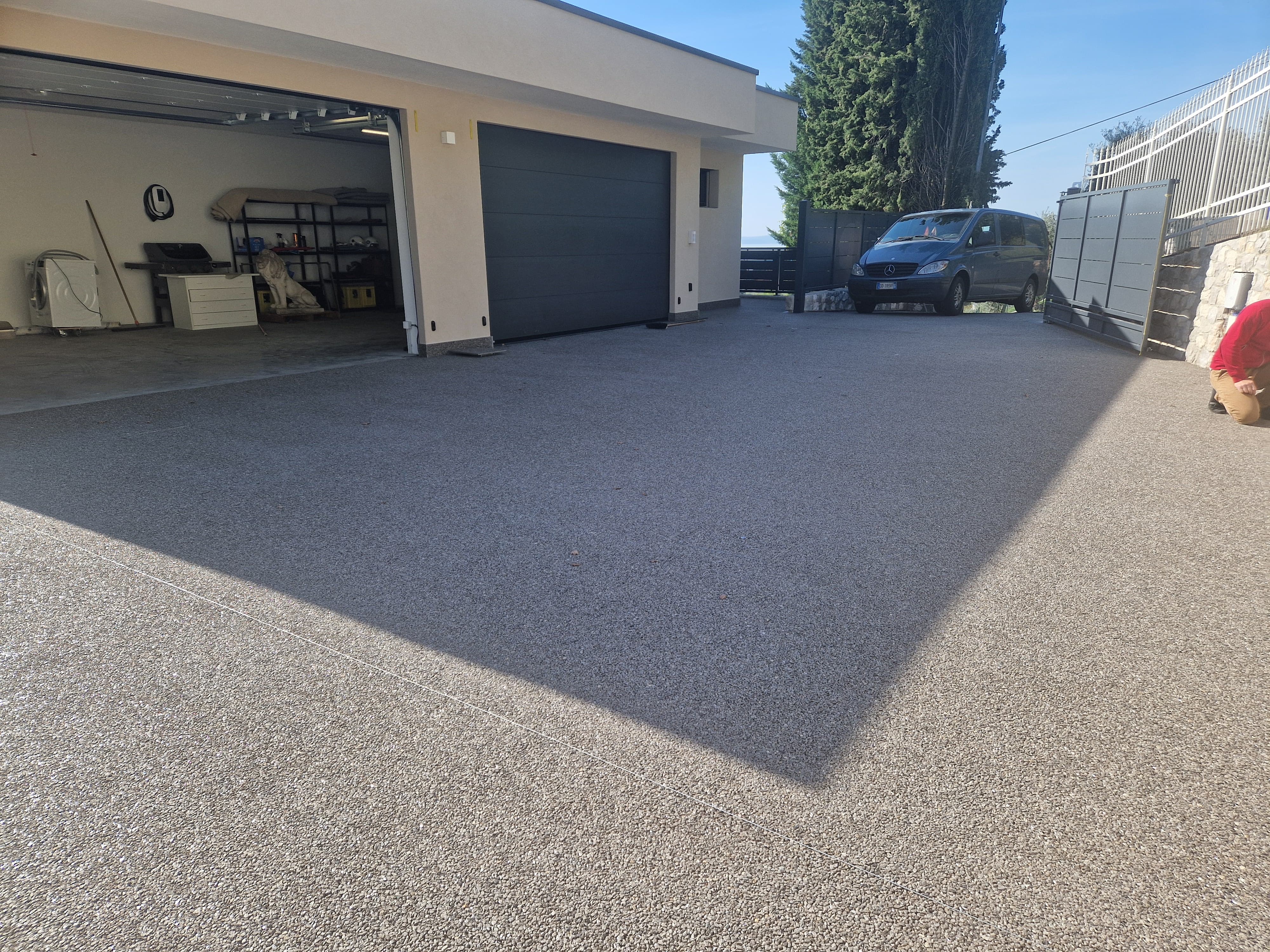 - riparazioni minime: in caso di danneggiamento, è possibile riparare facilmente una piccola sezione dello Stein Teppich, aggiungendo un nuovo strato di resina e ciottolini.